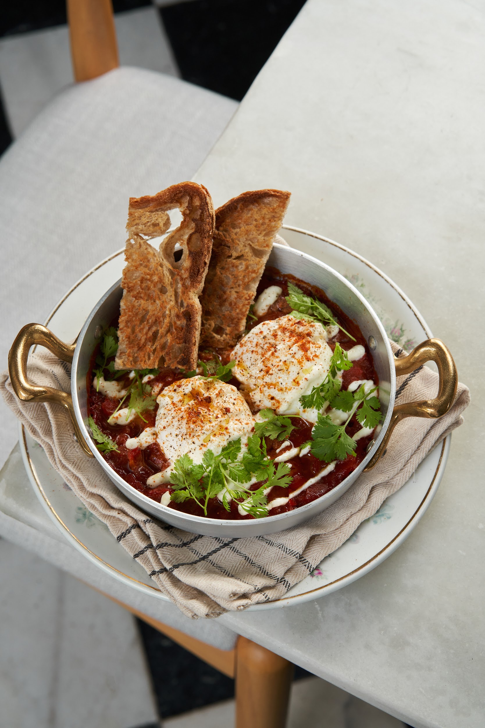 Reserva la teva taula a Salut Bistró per al servei de brunch. Shakshuka servit diàriament de 10:00 a 15:30.
